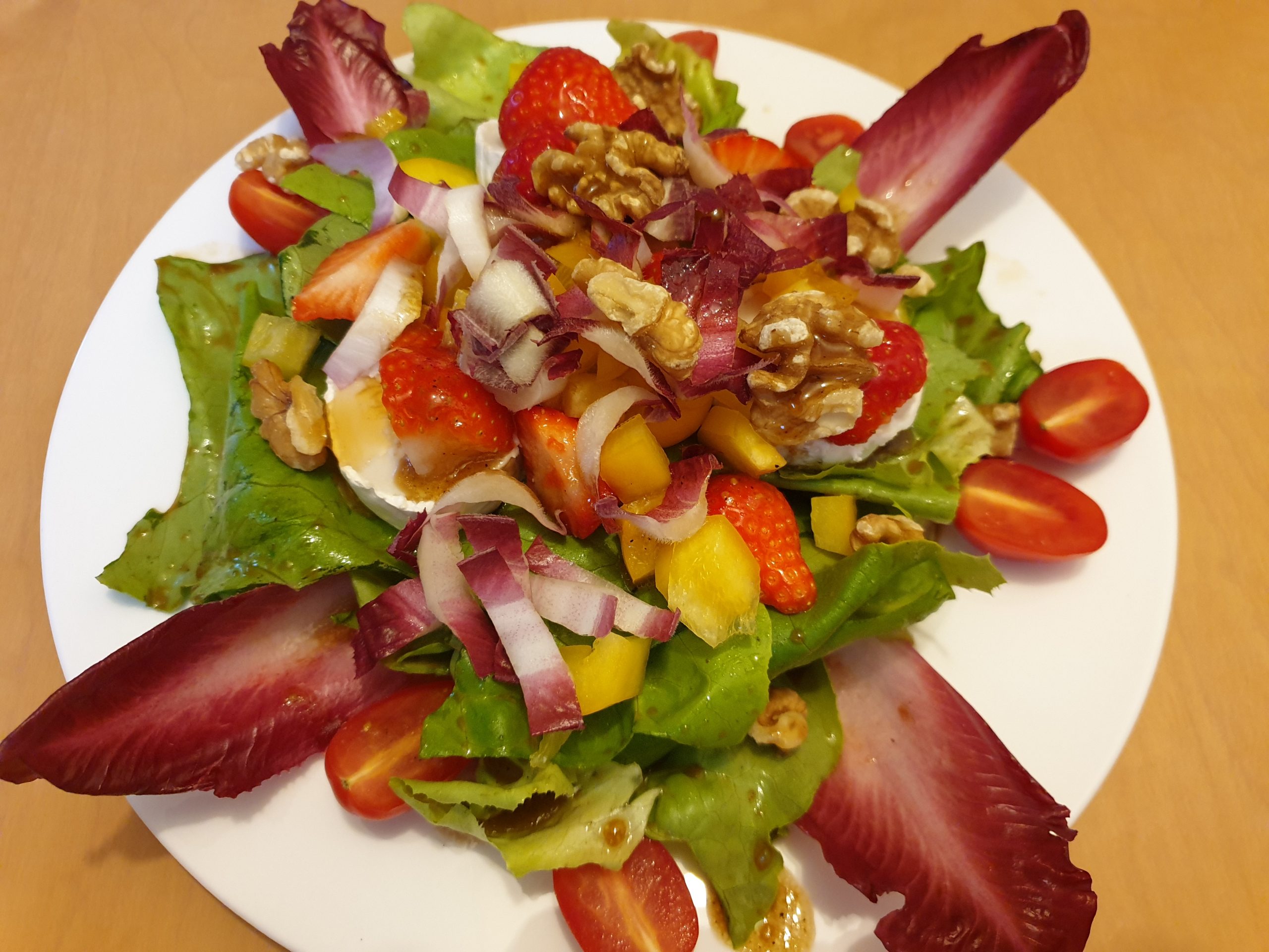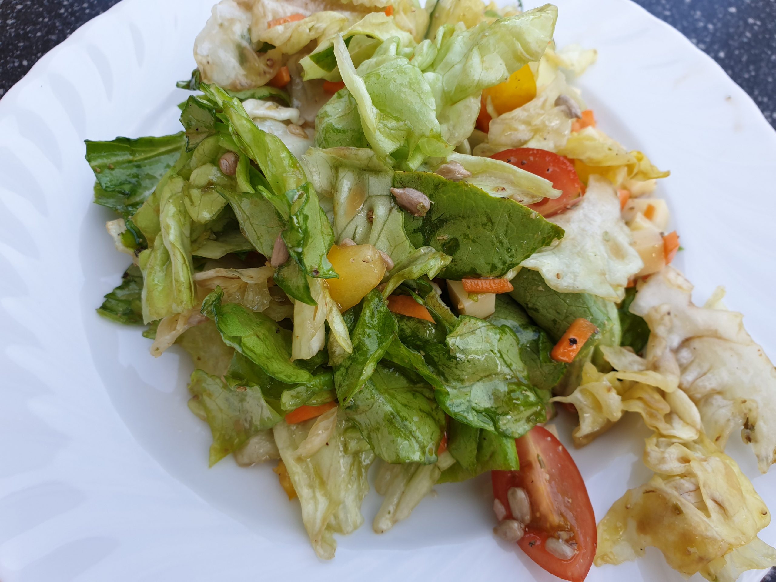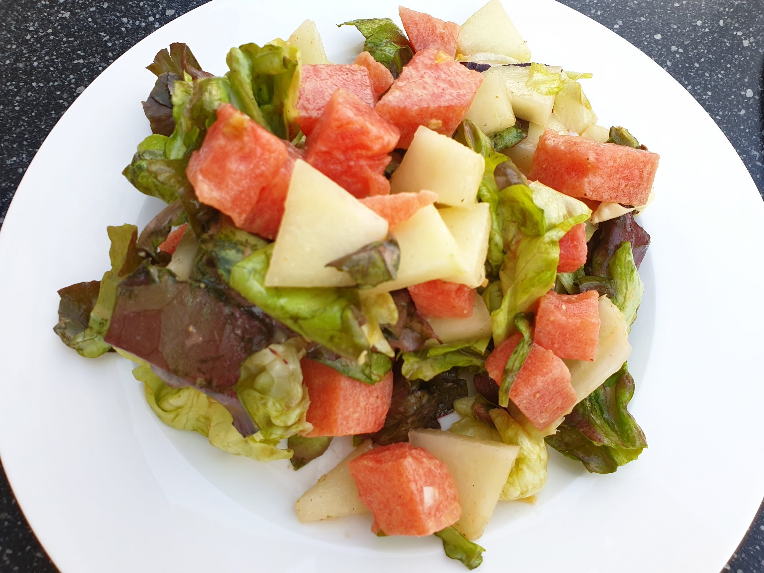 Wassermelonen-Salat, Schichtsalat, Fitness-Salat, Warmer Feldsalat, Gemischter Salat, Farmersalat, Eier-Kräuter-Salat, Italienischer Salat, Rucola-Feigen-Salat, Gurken-Salat, Ziegenkäse-Salat, Salat Hawaii, Thunfischsalat, Chicoree-Salat, Zucchini-Parmesan-Chips, Schnelle Brötchen